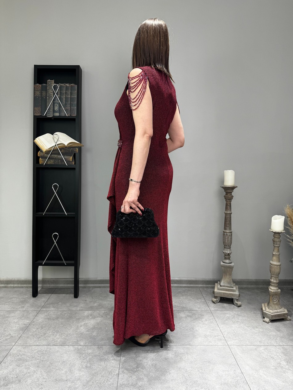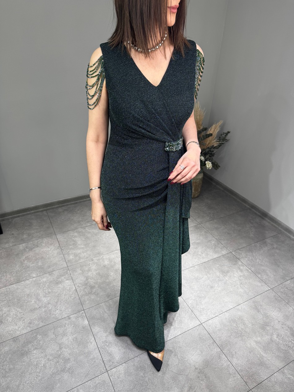 42-48 Beden Aralığında Bedenli, Likralı, Simli, Omuzu Kristal Taş Boncuklu, Abiye Elbise…