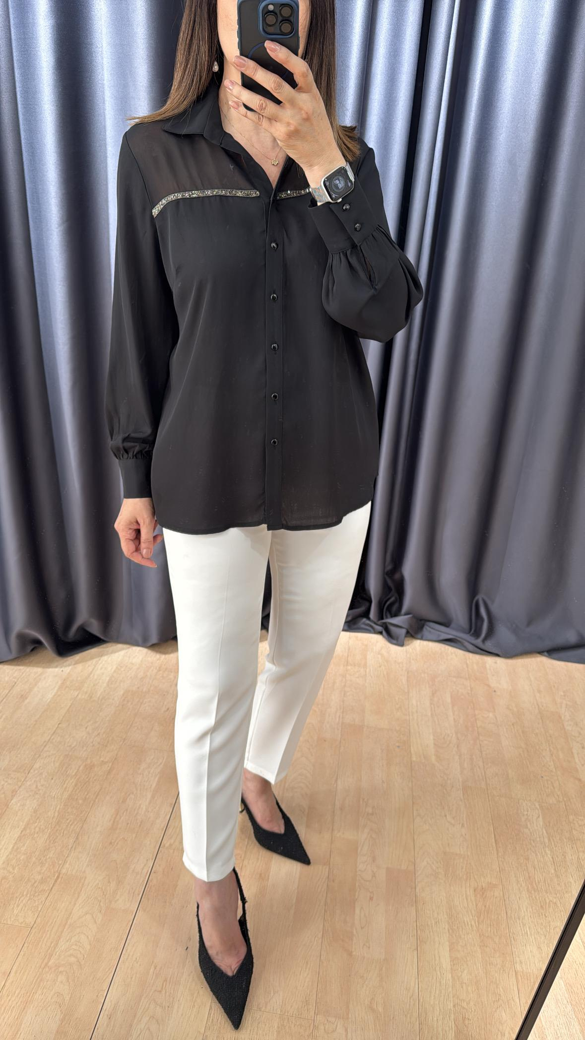 42-48 Beden Aralığında Bedenli, Şerit Taş Detaylı, Queen Krep, Abiye Gömlek…