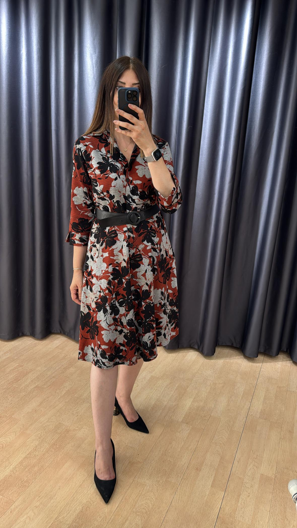 42-48 Beden Aralığında Bedenli, Önden Düğmeli, Kendinden Kemerli, Belmando Kumaş Gömlek Elbise…