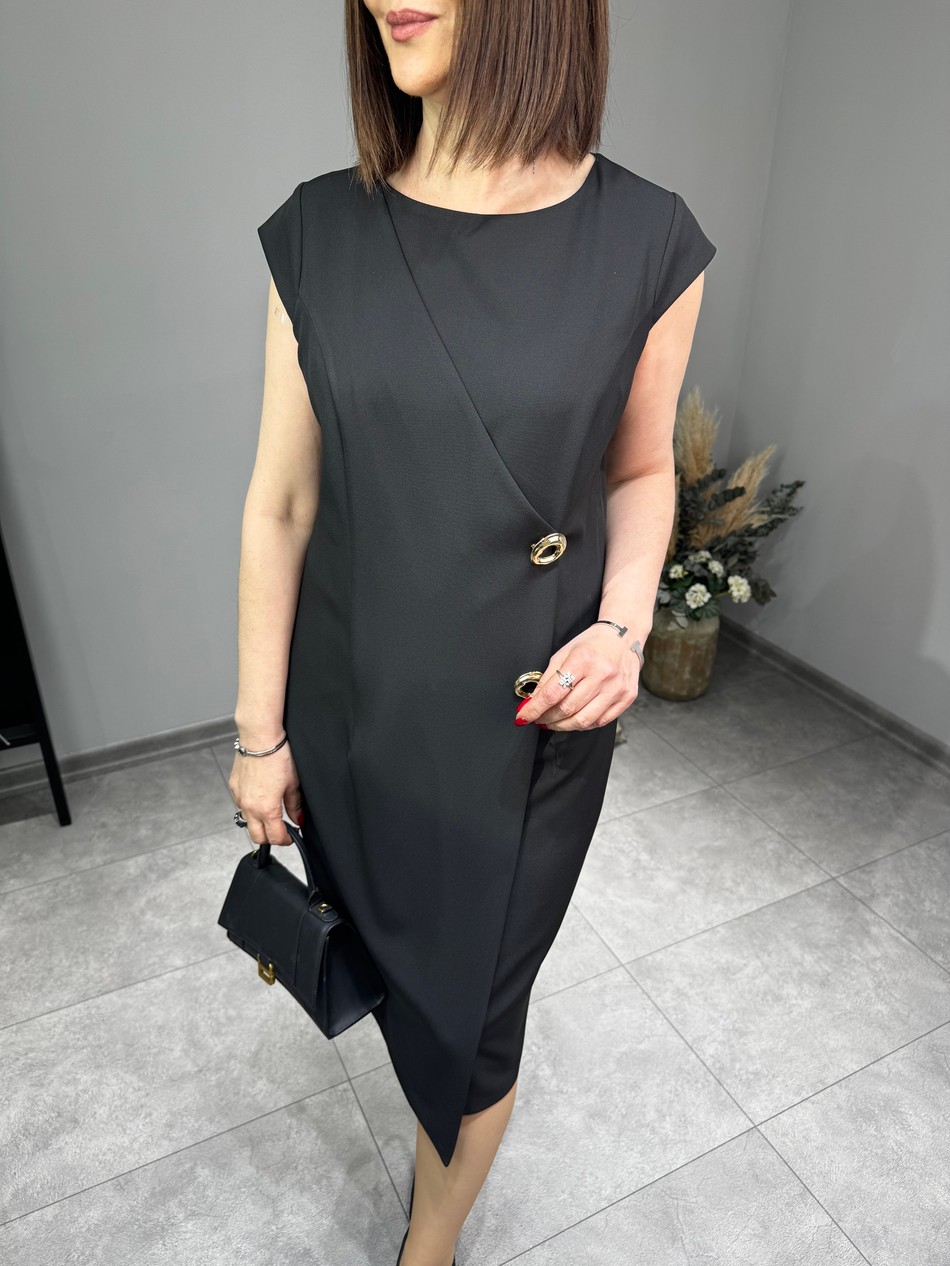 42-48 Beden Aralığında Bedenli, İçi Astarlı, Broş Detaylı, Kruvaze, Krep Elbise…
