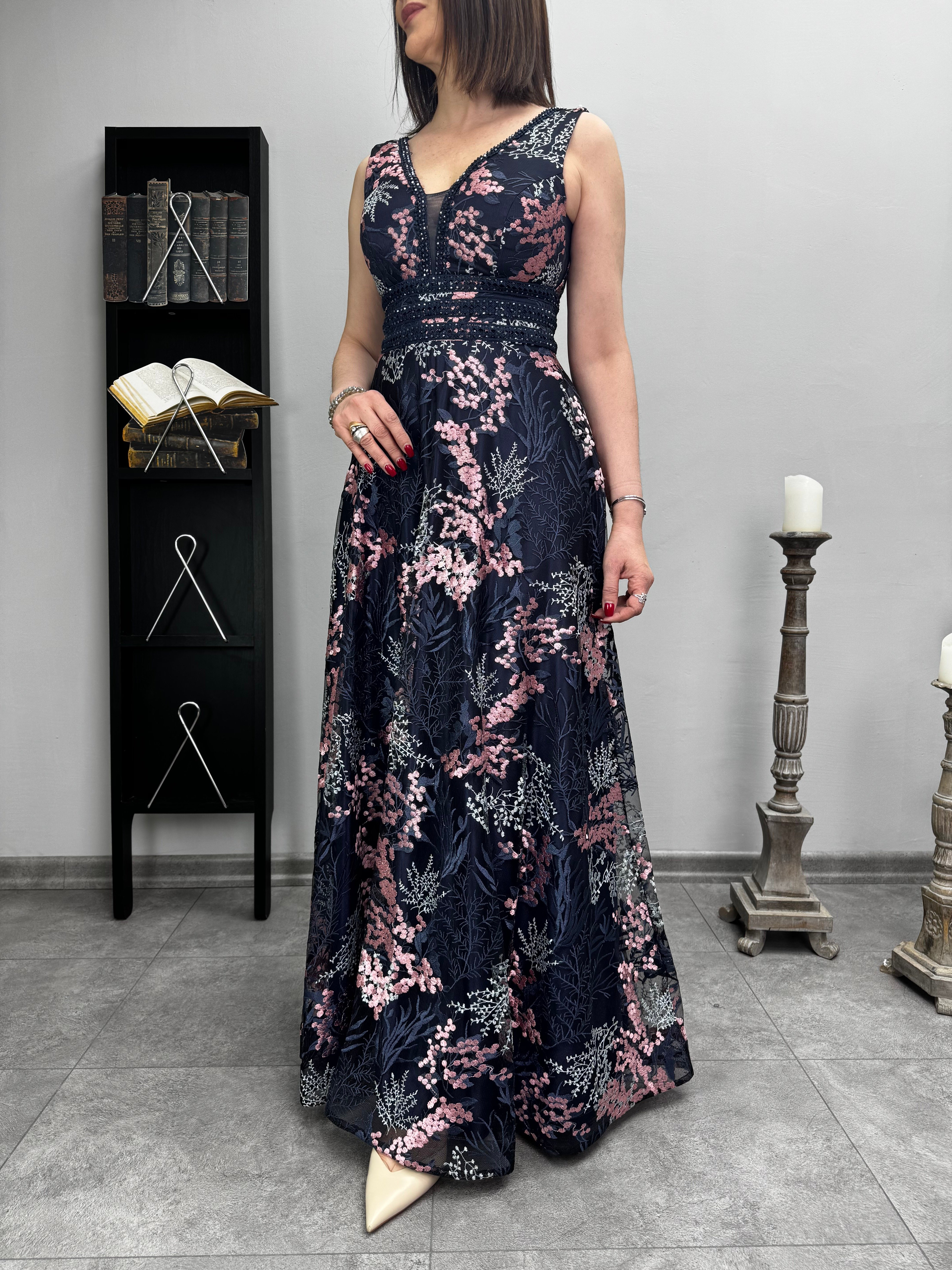 40-44 Beden Aralığında Bedenli, İçi Saten Astarlı, Üzeri Nakış Çiçek Motifli, Kristal Taş Detaylı, Balenli, Abiye Elbise…