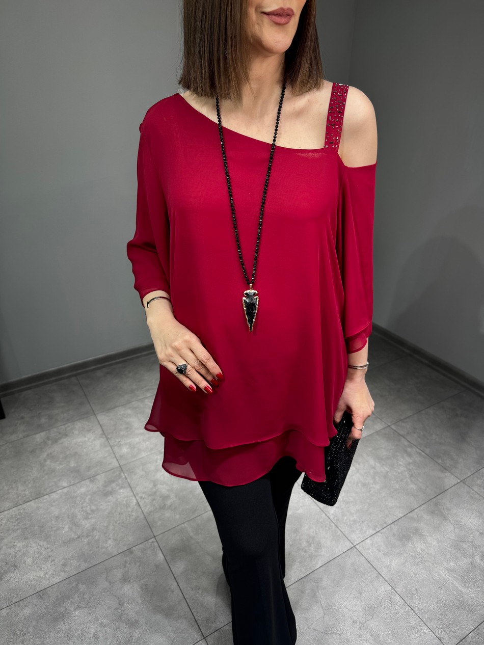 44-50 Beden Aralığında Bedenli, Omuzu Taşlı, Çift Kat, Tasarım, Şifon Tunik…