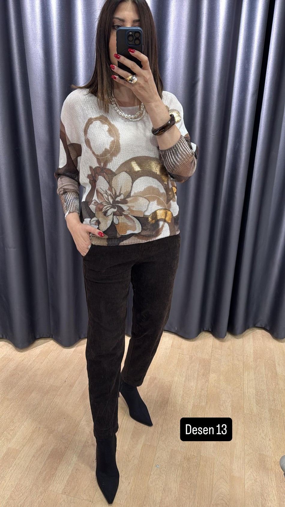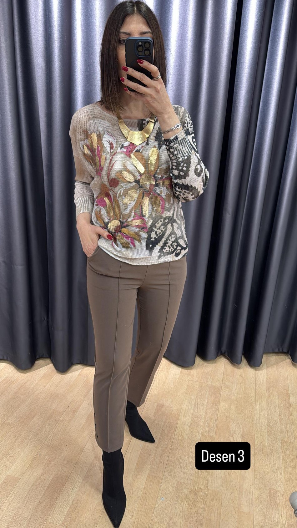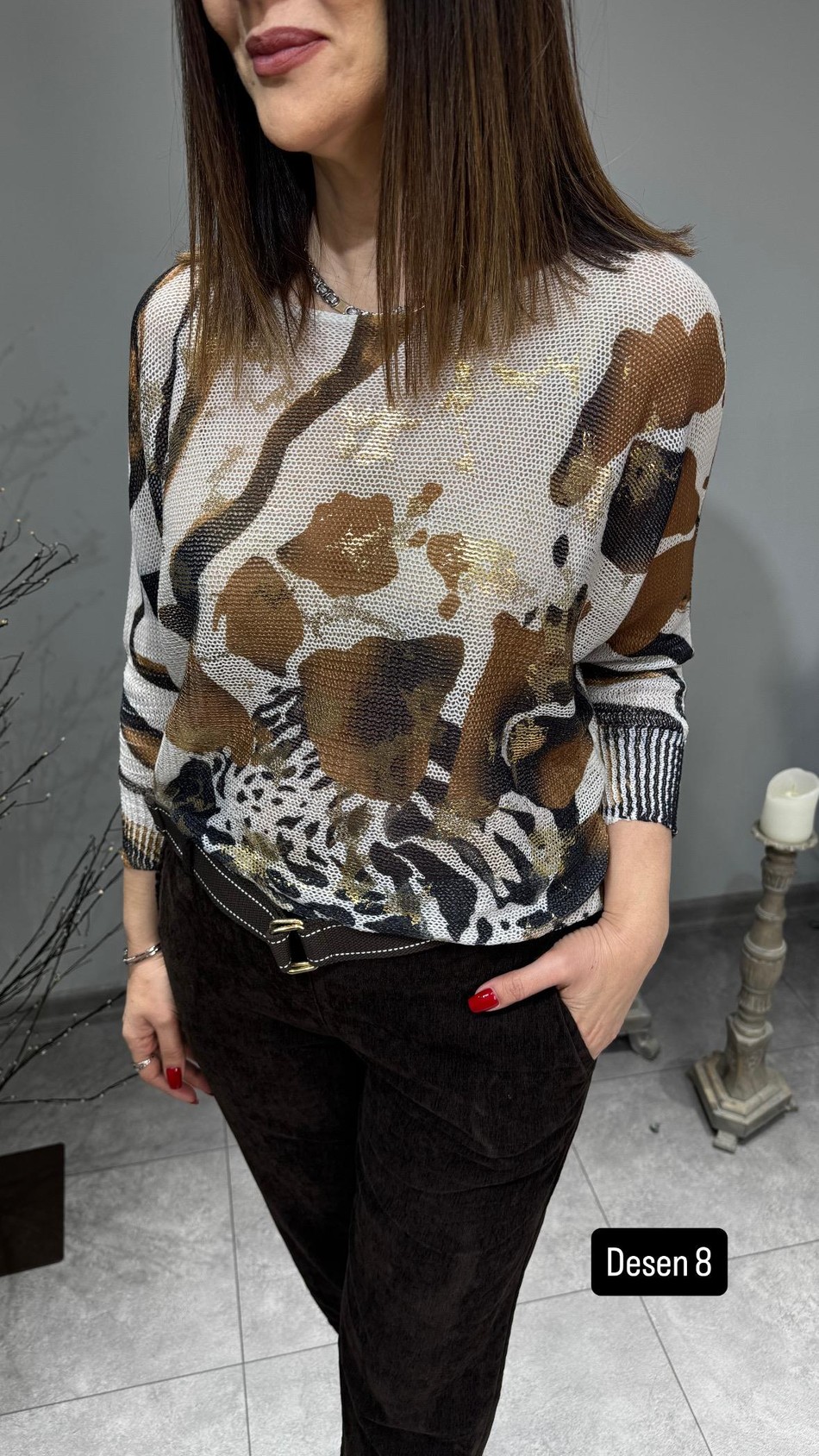Standart 40-44 Beden Uyumlu, Leoparlı Çiçek Desen, File, İthal Triko…