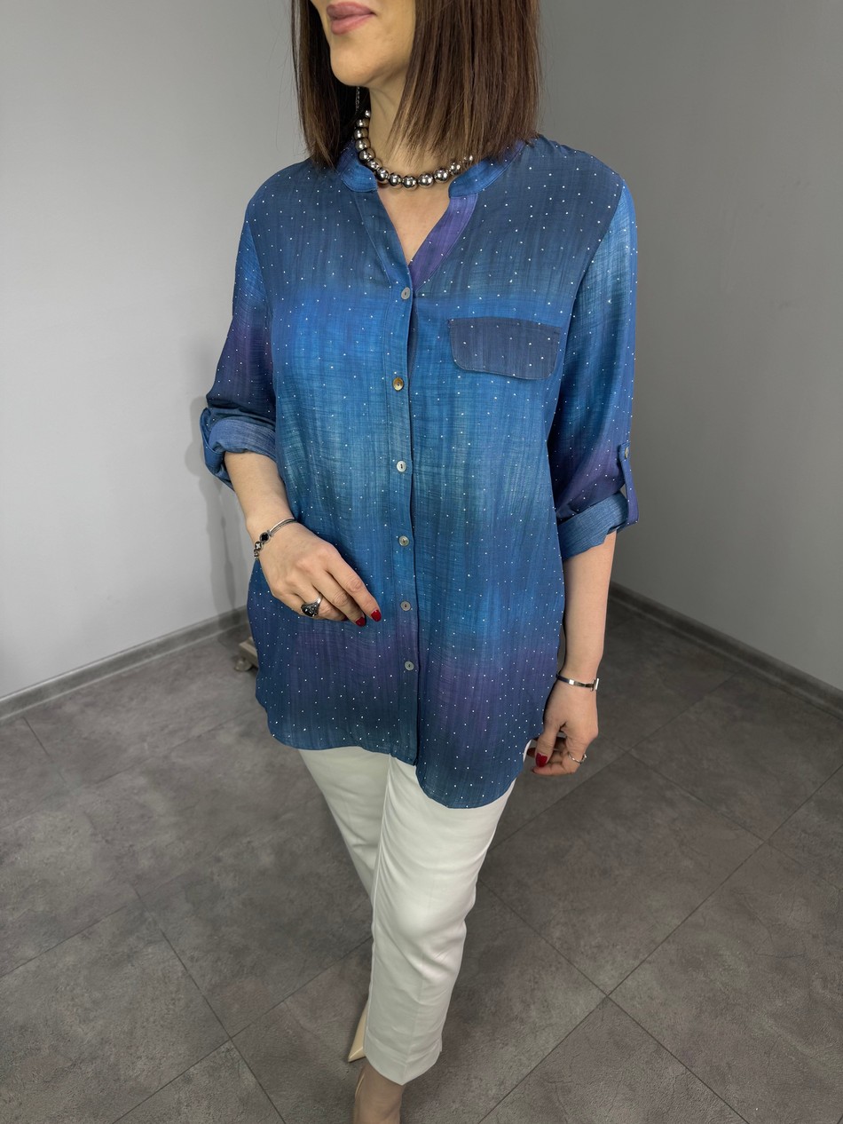 42-48 Beden Aralığında Bedenli, Üzeri Taşlı, Hakim Yaka, Uzun Kollu Gömlek…