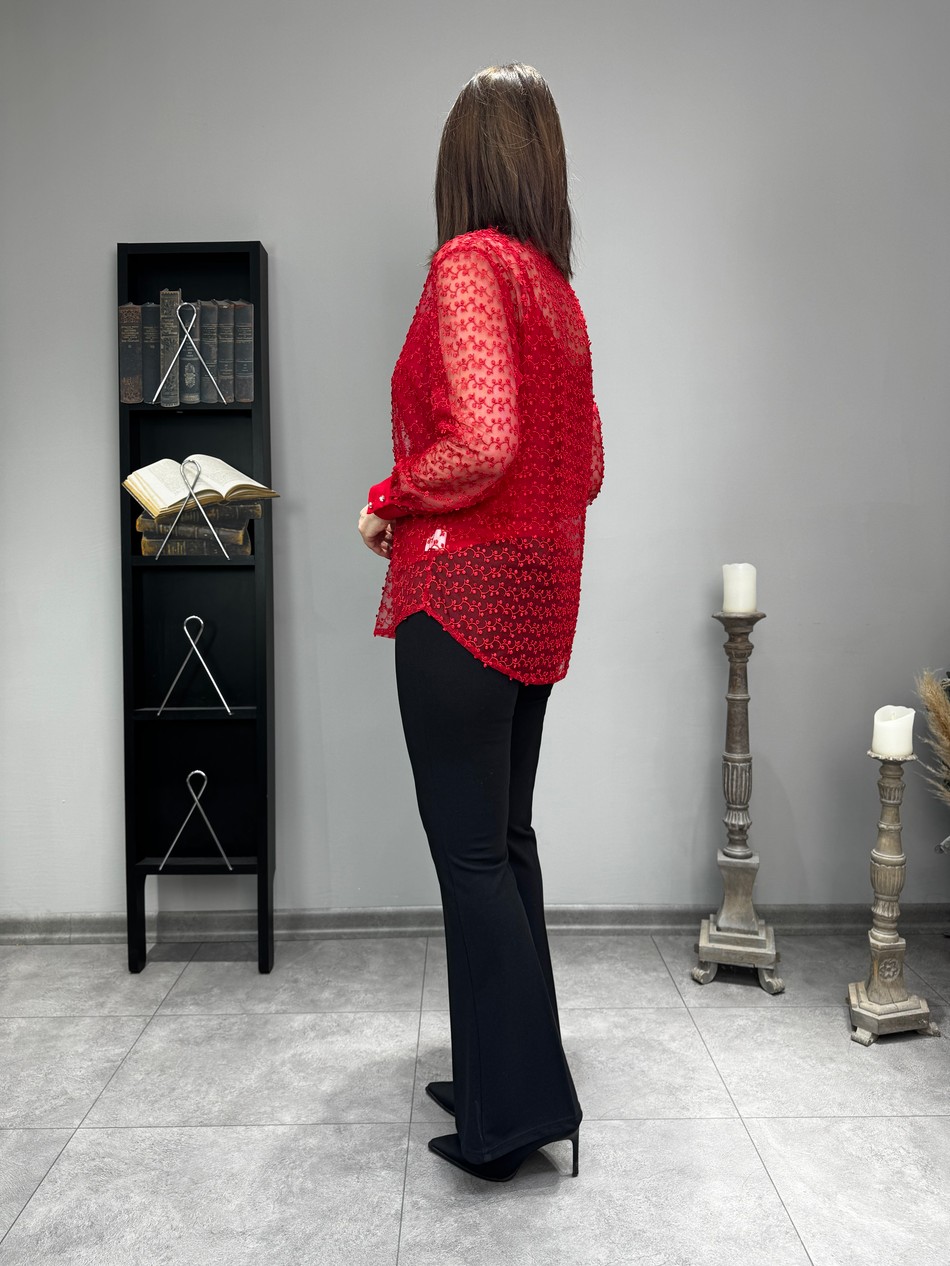 Kabartma Nakışlı Güpür Gömlek