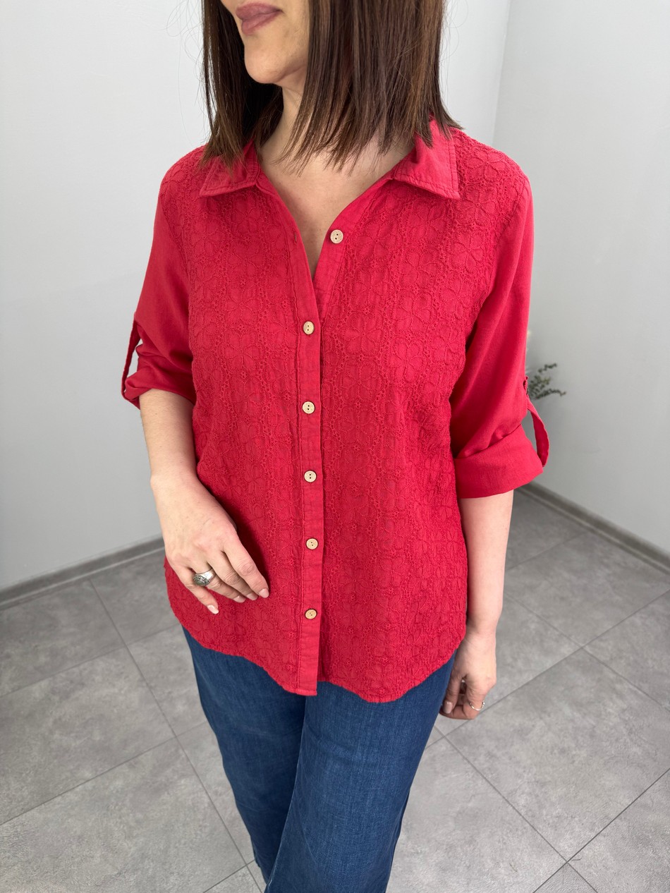 Kabartma Nakışlı Pamuklu Gömlek