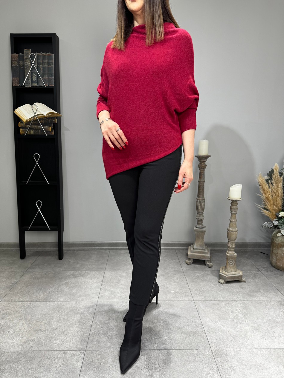 Standart 38-44 Beden Uyumlu, Asimetrik Kesim, Kayık Yaka, İthal, Tasarım Triko…