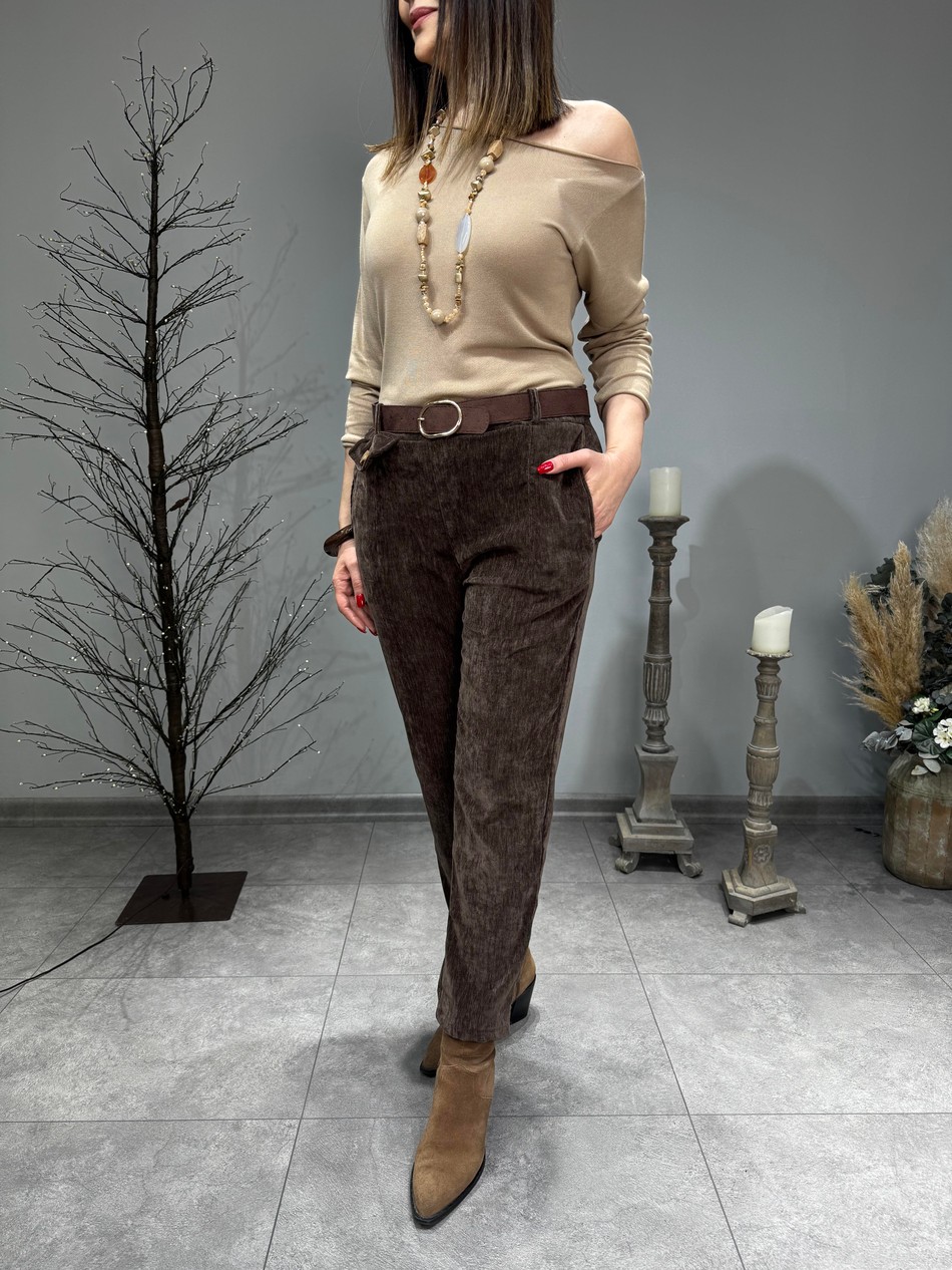 Kemerli İthal Kadife Pantolon