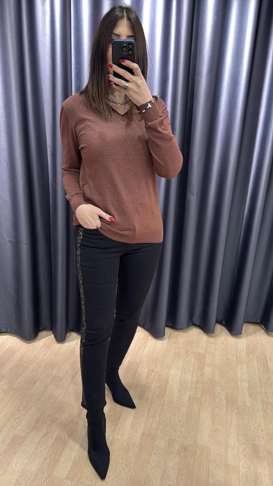 Kendinden Simli V Yaka Triko