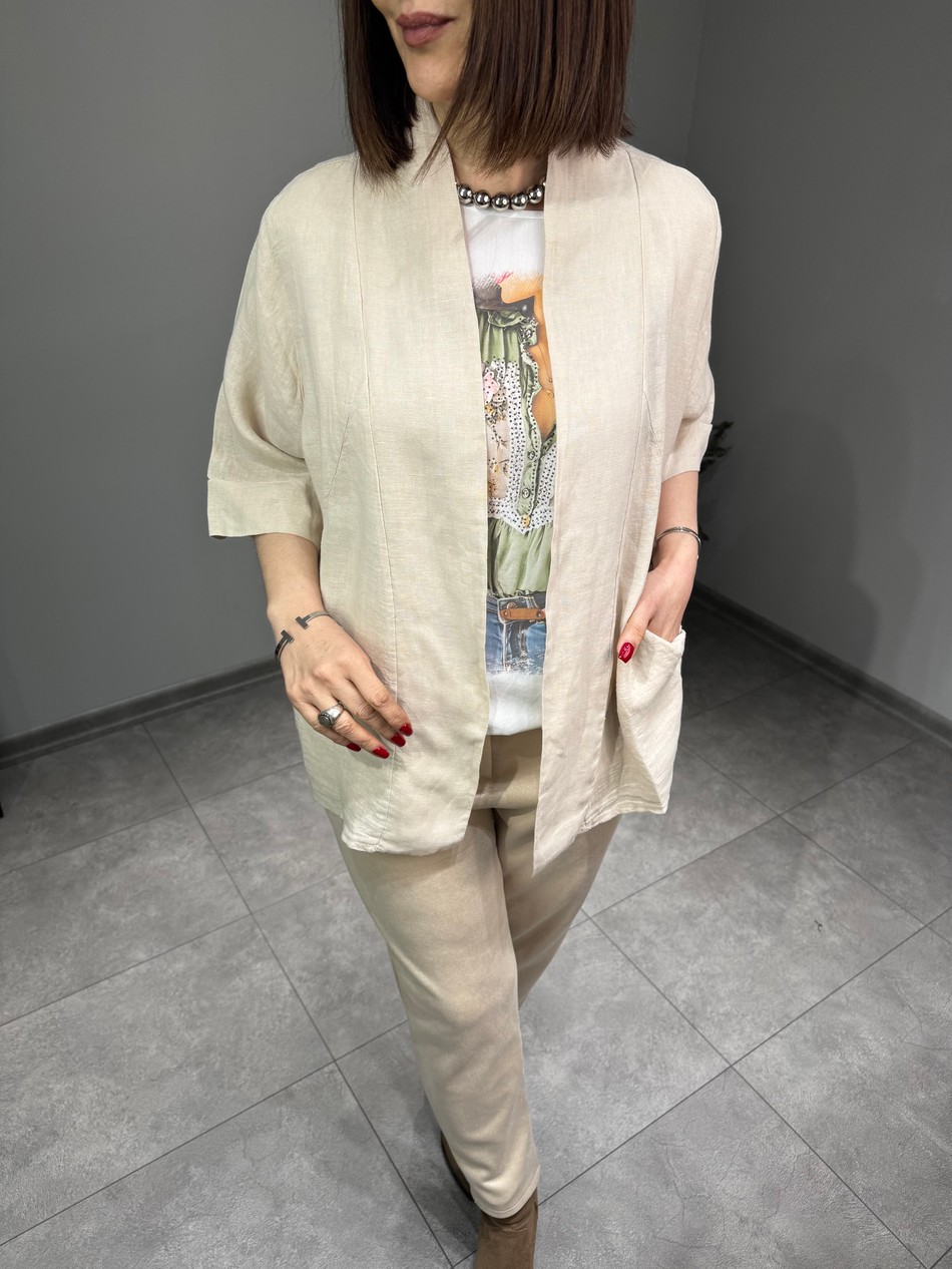 Standart, 40-44 Beden Uyumlu , Keten, Cepli Ceket…