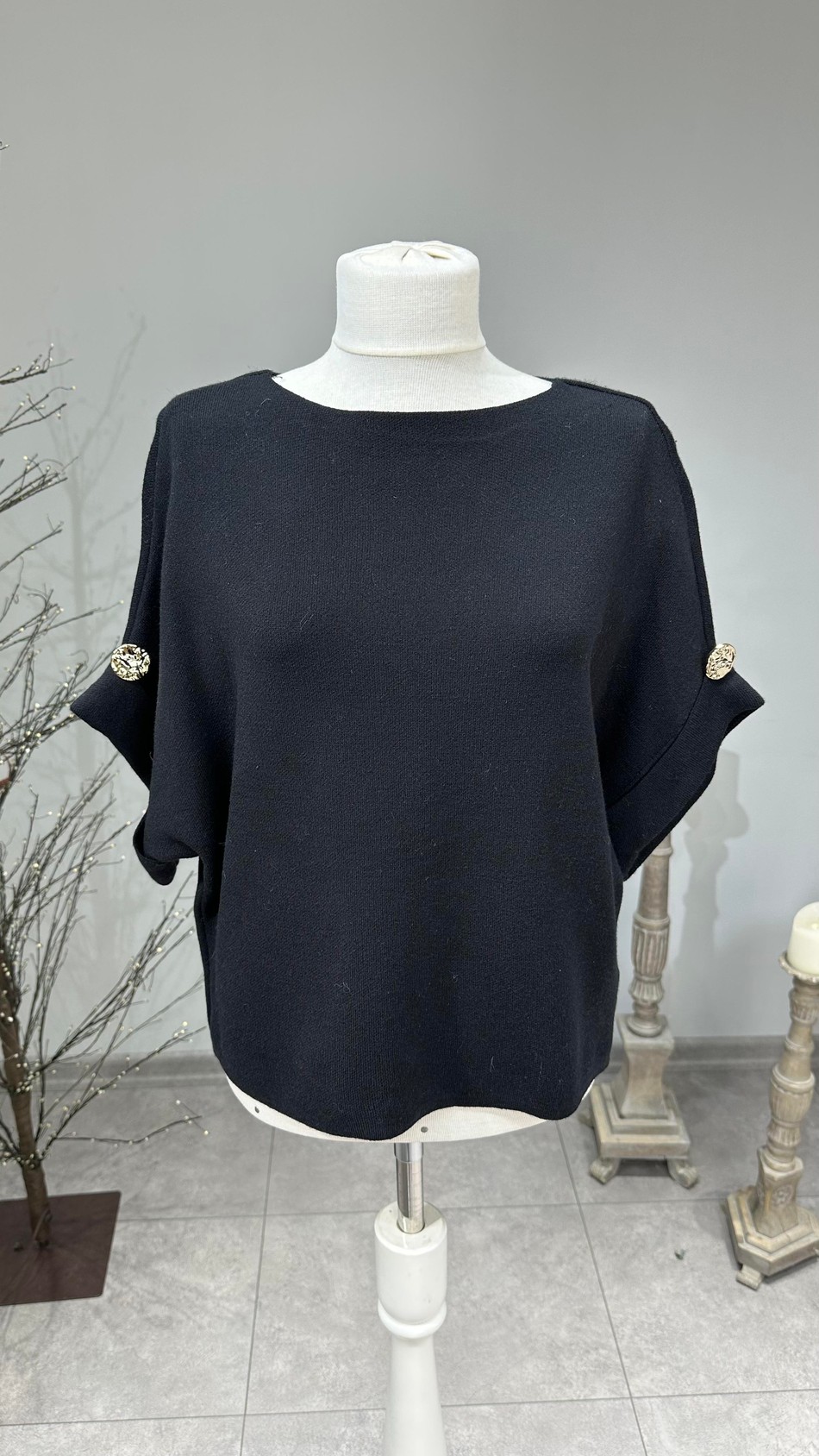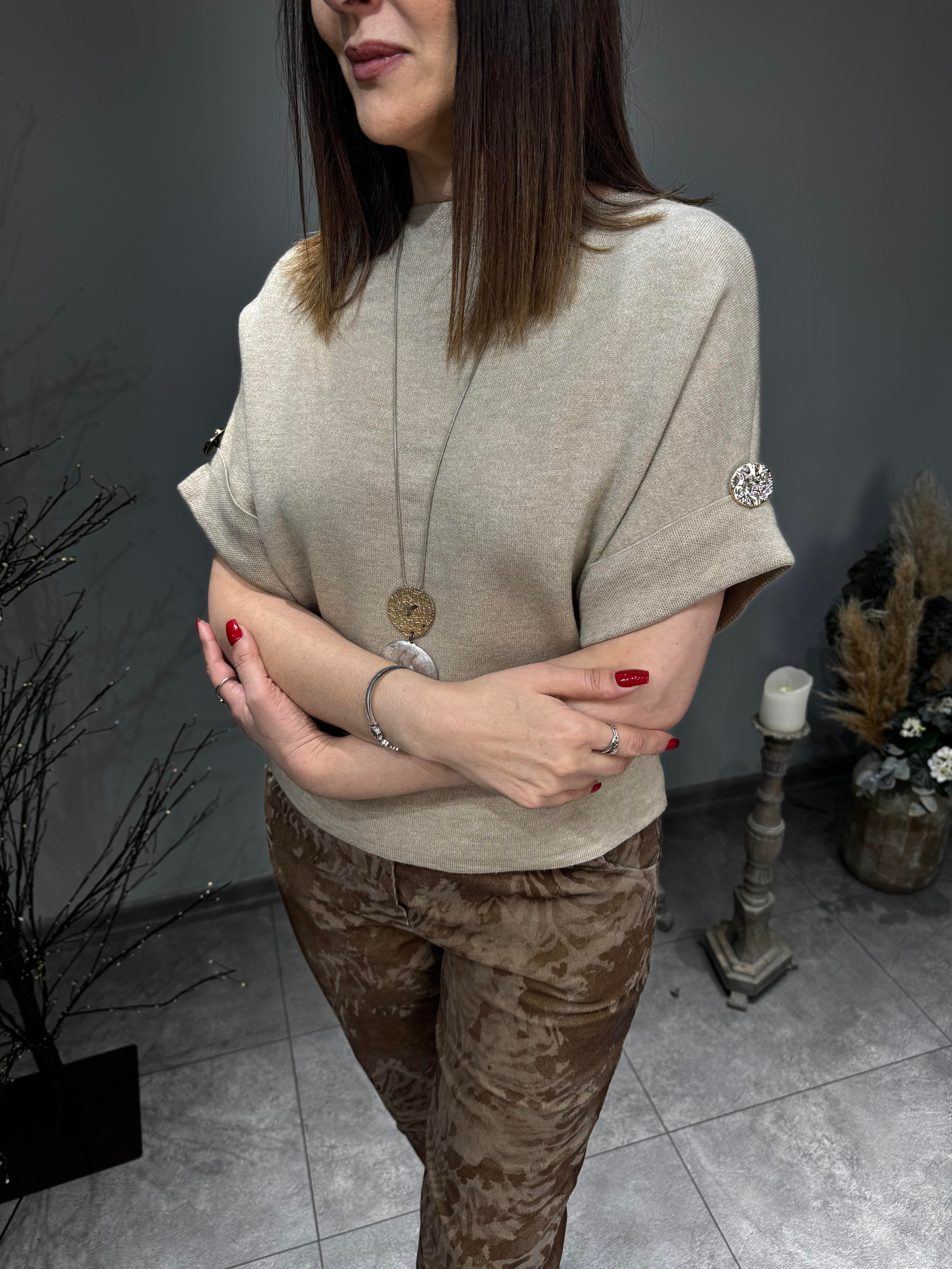 Kolda Düğme Detaylı İthal Triko
