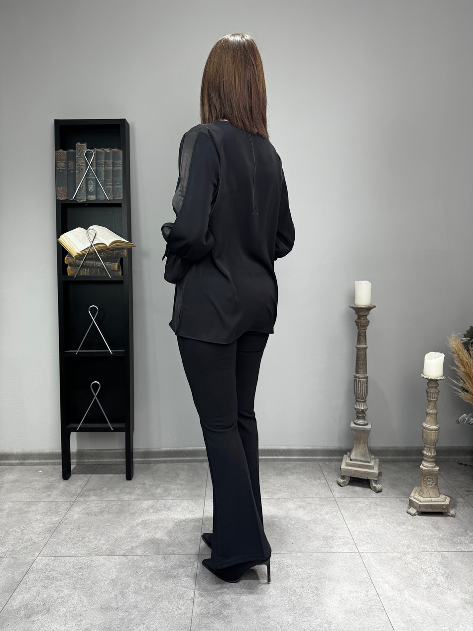 44-50 Beden Aralığında Bedenli, Kolları Şifon Detaylı, V Yaka Bluz…