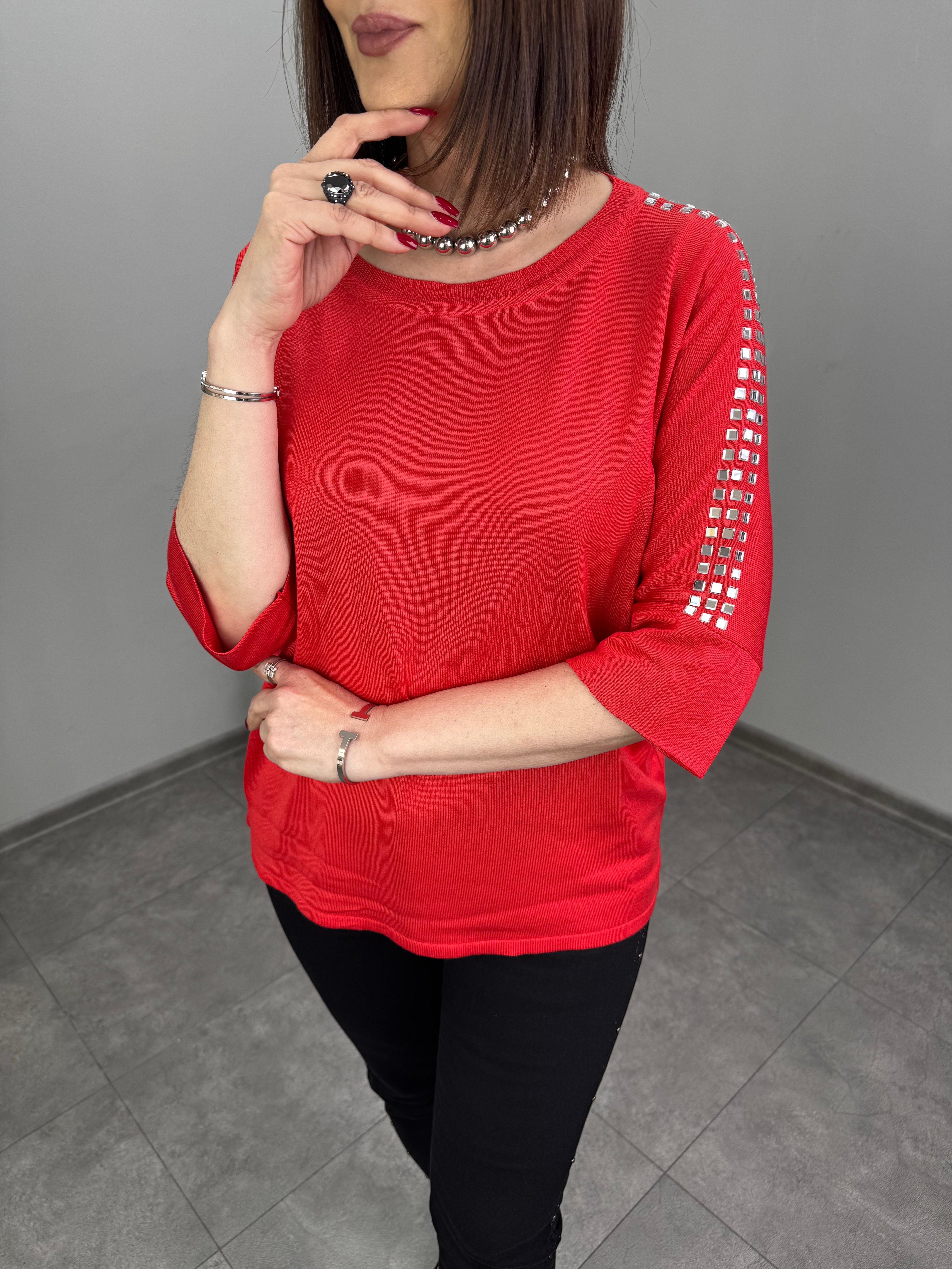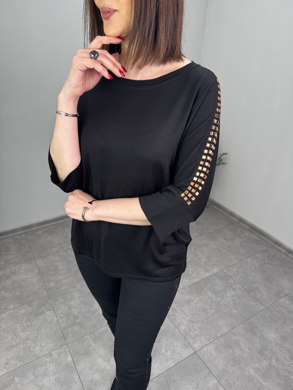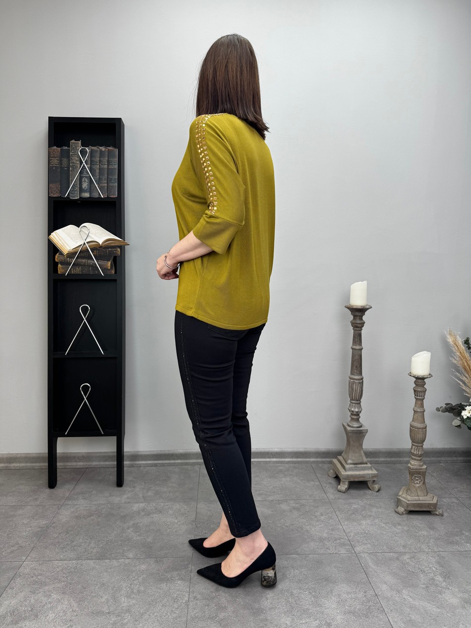 Standart 40-46 Beden Uyumlu, Kolları Taş Detaylı, Baharlık Triko…