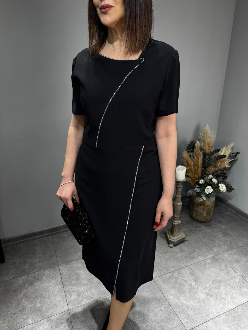 42-48 Beden Aralığında Bedenli, Taş Zincir Aksesuarlı, Krep, Abiye Elbise…