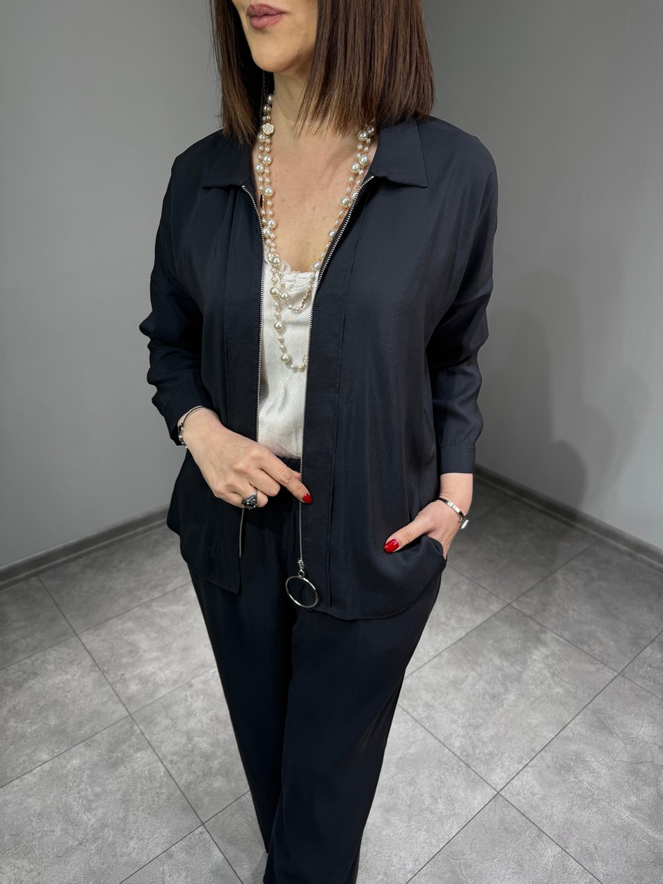 40-46 Beden Aralığında Bedenli, Önden Fermuarlı, Kupra Kumaş Gömlek Ceket…