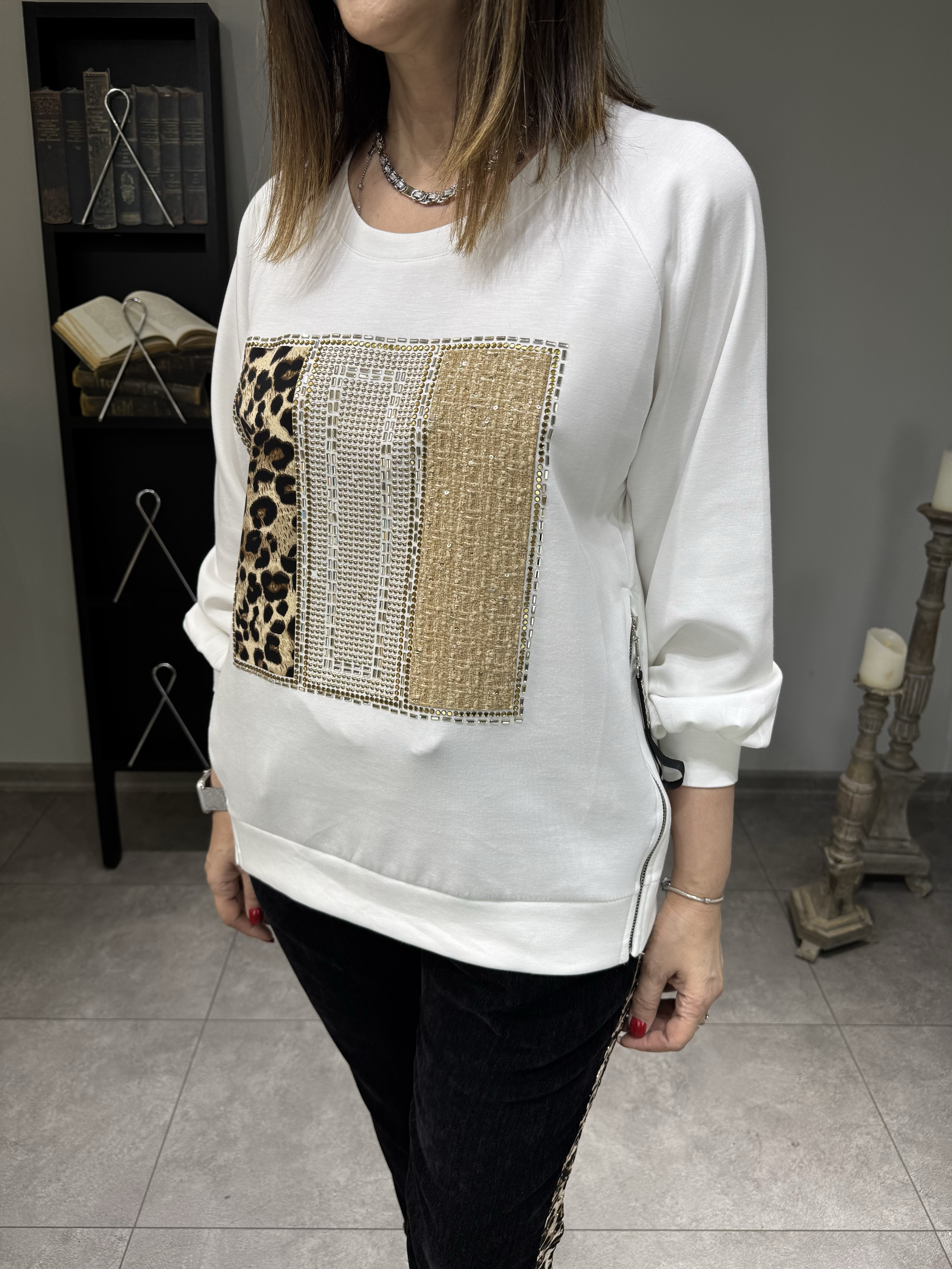 Standart 40-46 Beden Uyumlu, Yanları Fermuar Detaylı, Modal Kumaş, Üzeri Taş Detaylı, İthal Sweat…