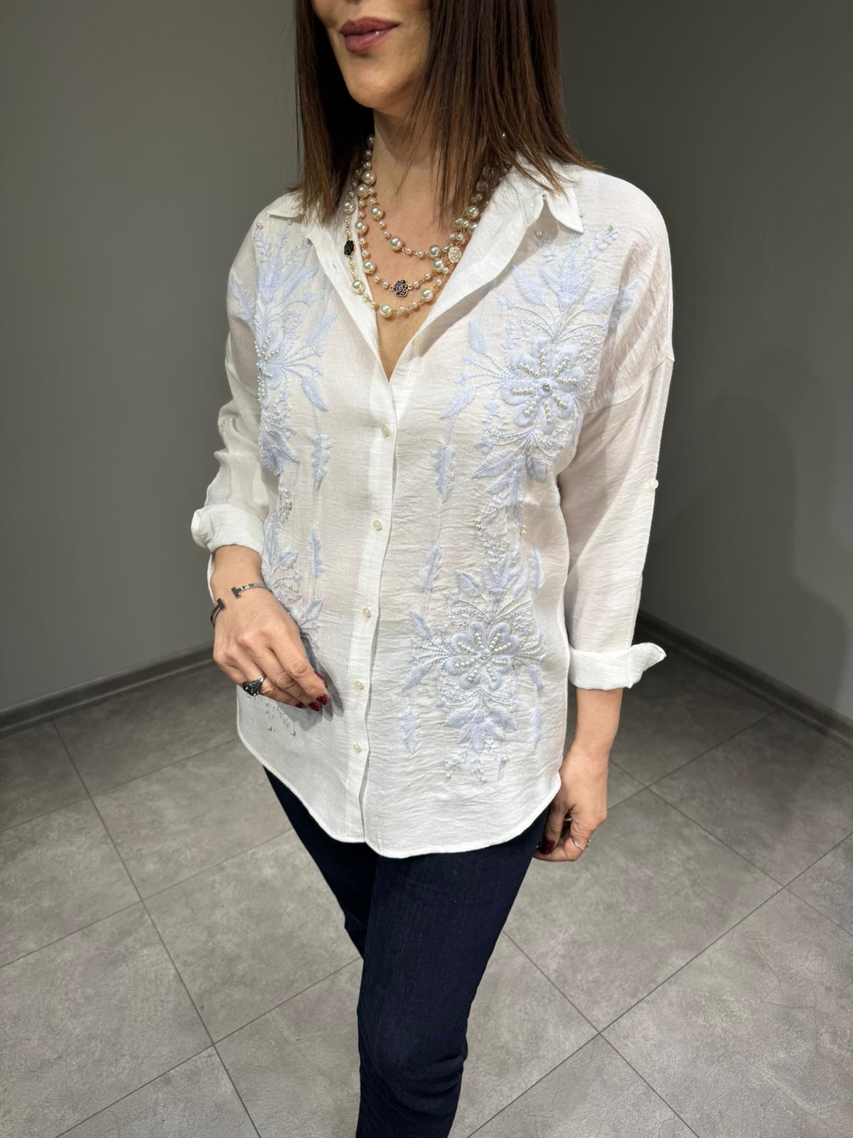 40-46 Beden Aralığında Bedenli, Nakışlı İnci İşlemeli Gömlek…
