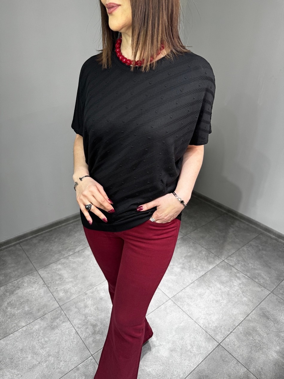 Standart 40-46 Beden Uyumlu, Yarasa Kol, Pıtırcık Desen Triko…