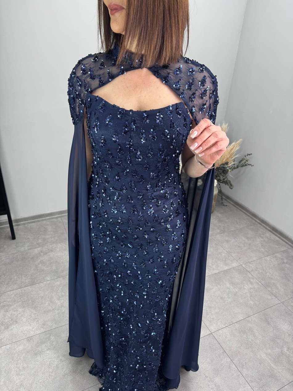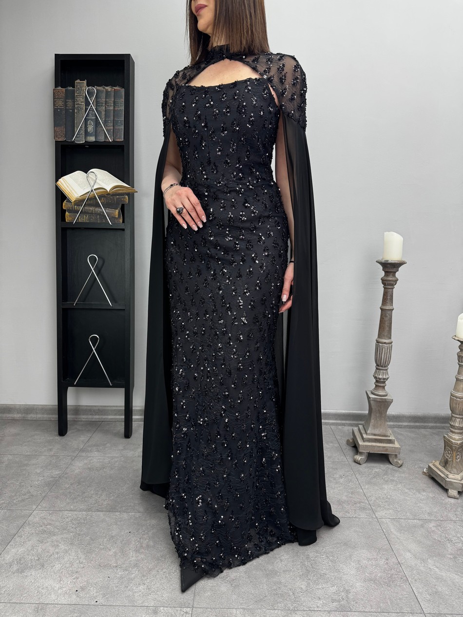 40-46 Beden Aralığında Bedenli, Astarlı, Balenli, Üzeri Pelerinli, Pul Payetli, Abiye Elbise…