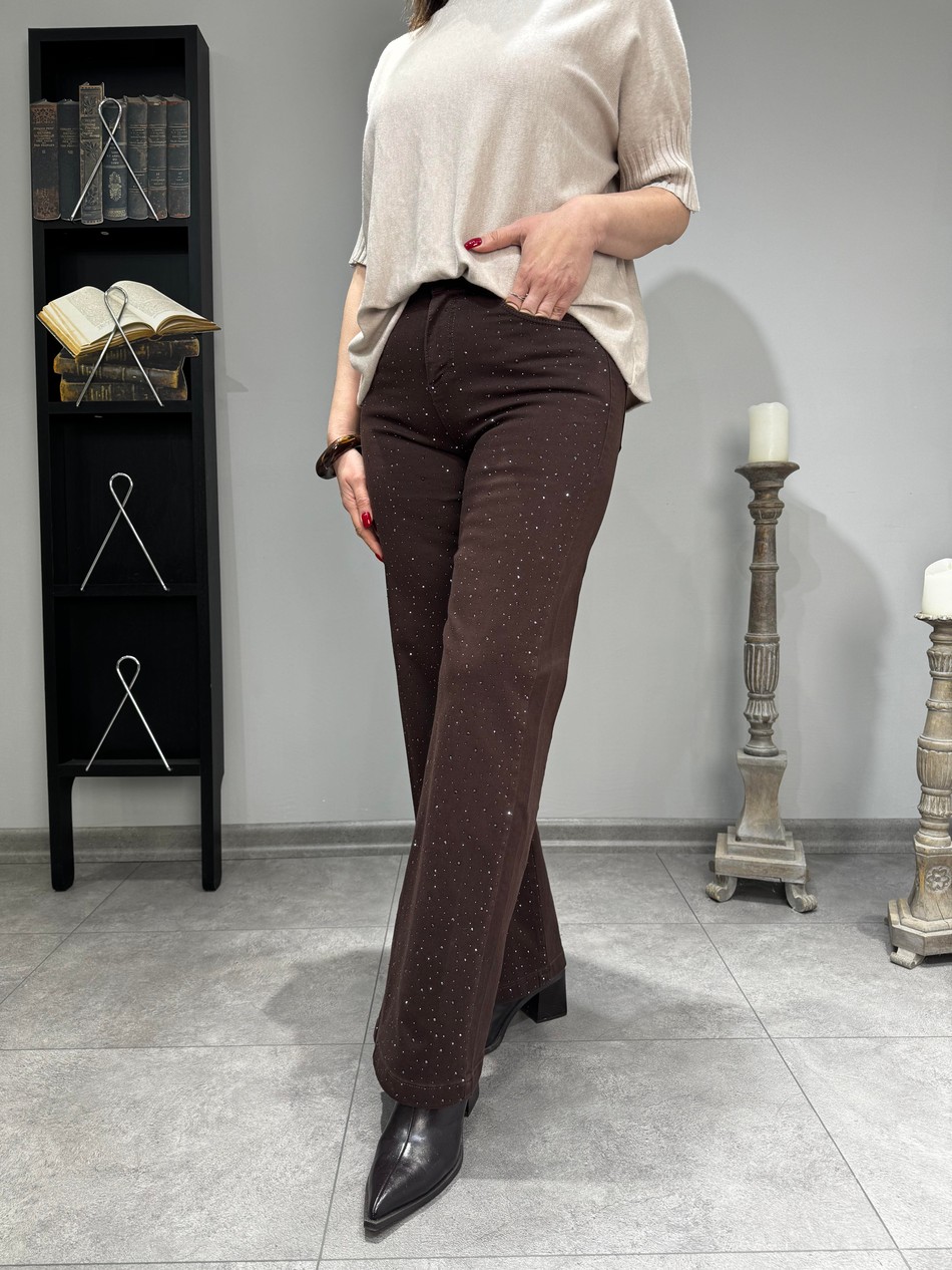 40-46 Beden Aralığında Bedenli, Yüksek Bel, Full Liralı, Serpme Taşlı Palazzo Jean