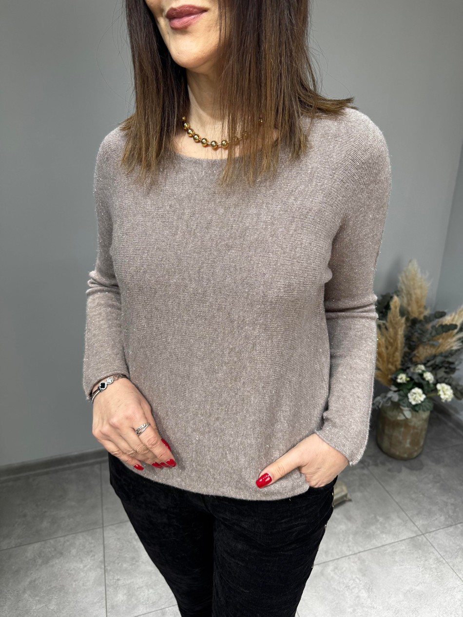 Standart 38-44 Beden Uyumlu, Sıfır Yaka, Simli, İthal Triko…