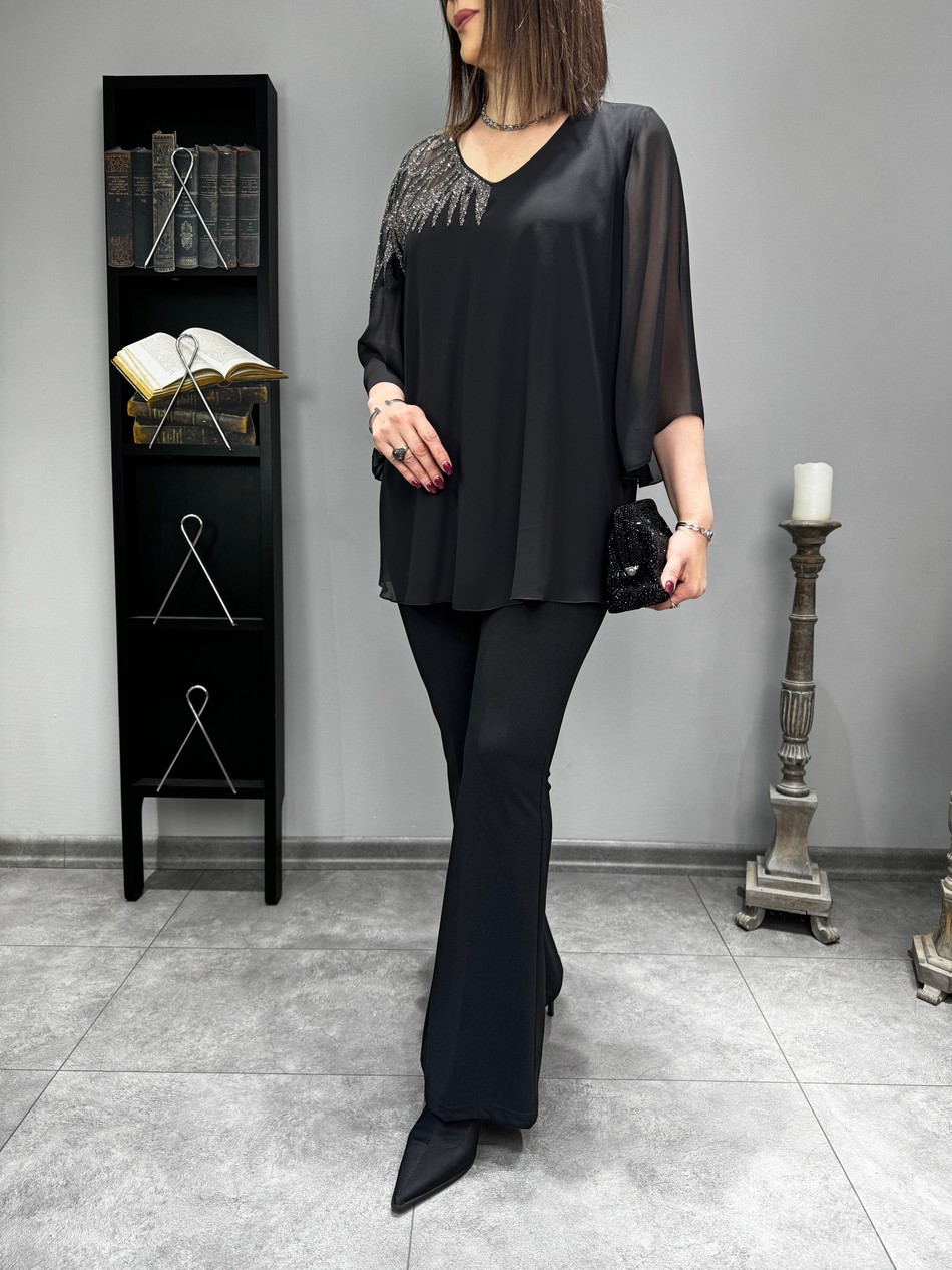 46-52 Beden Aralığında Bedenli, Omuzu Kristal Taşlı, İçi Astarlı, Şifon, Abiye Bluz…