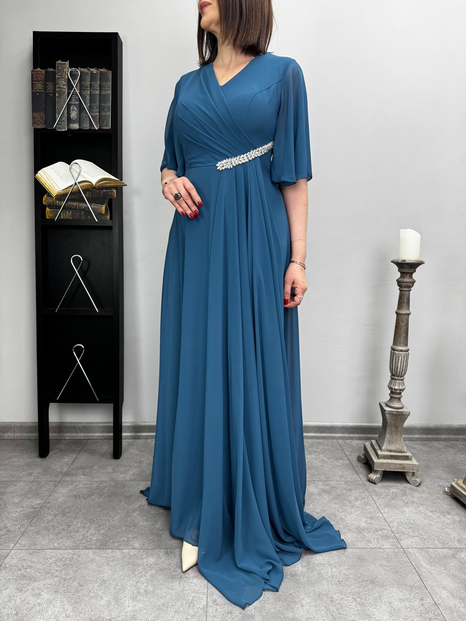 42-48 Beden Aralığında Bedenli, İçi Astarlı, Taş Aksesuarlı, Şifon, Abiye Elbise…