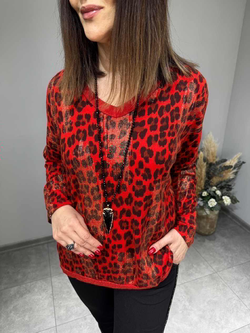 Standart 44-48 Beden Uyumlu, Leopar Desen, Simli, İthal Bluz…