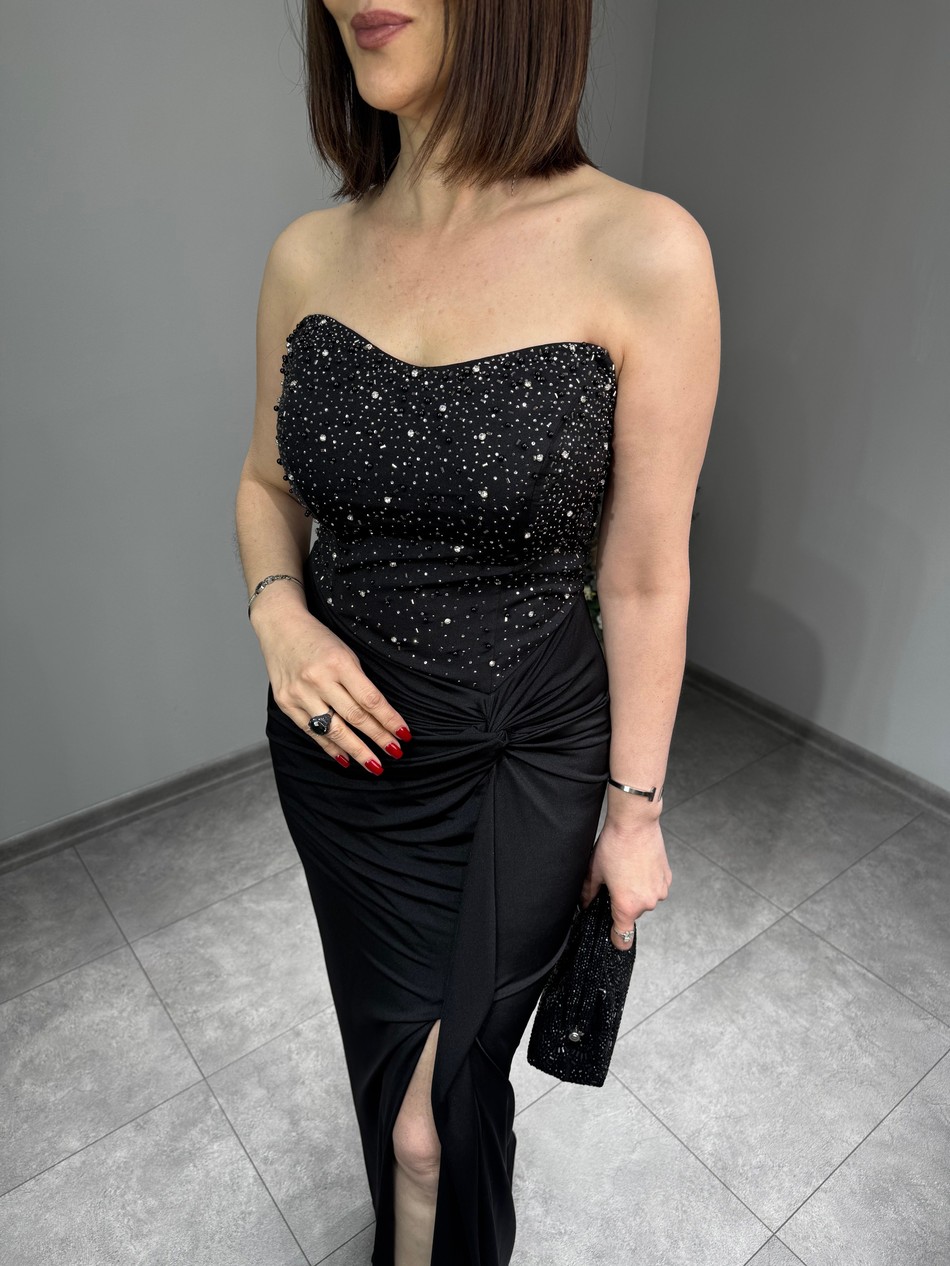 36-42 Beden Aralığında Bedenli, Astarlı, Kristal Taş Detaylı, Straplez, Likralı, Abiye Elbise…