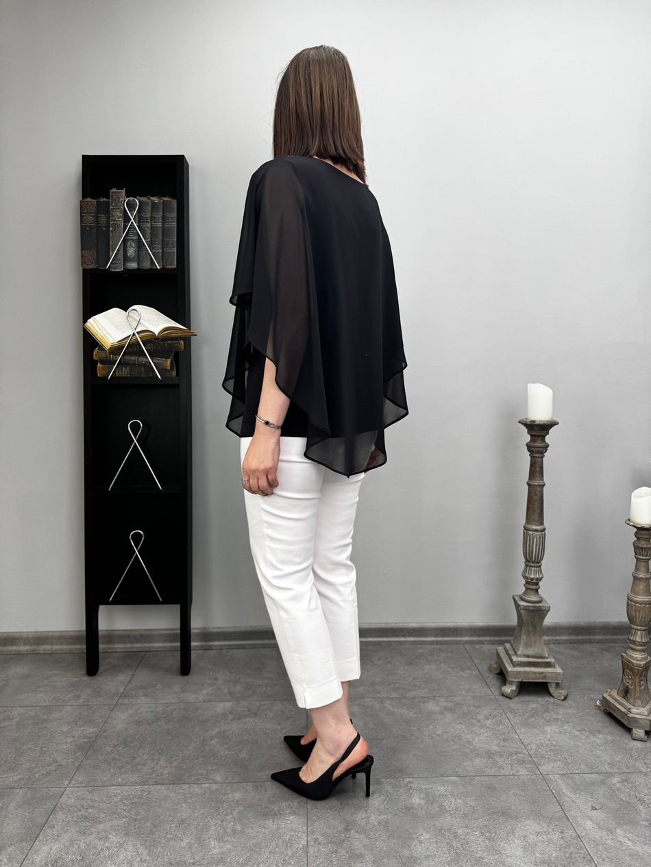 42-48 Beden Aralığında Bedenli, İçi Sandy, Üzeri Şifon Pelerin, Taş Detaylı Bluz…