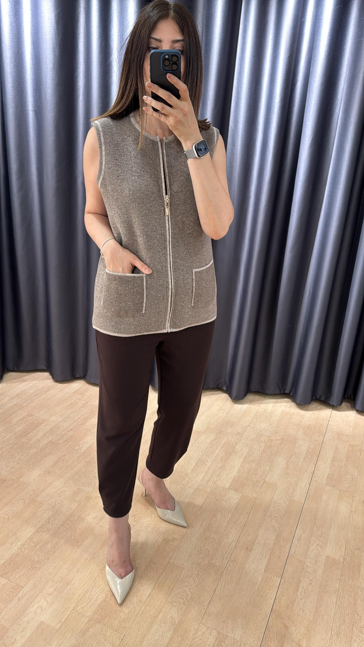 40-42 ( 1 Beden ), 44-46 ( 2 Beden ), Önden Fermuarlı, Triko Yün Yelek