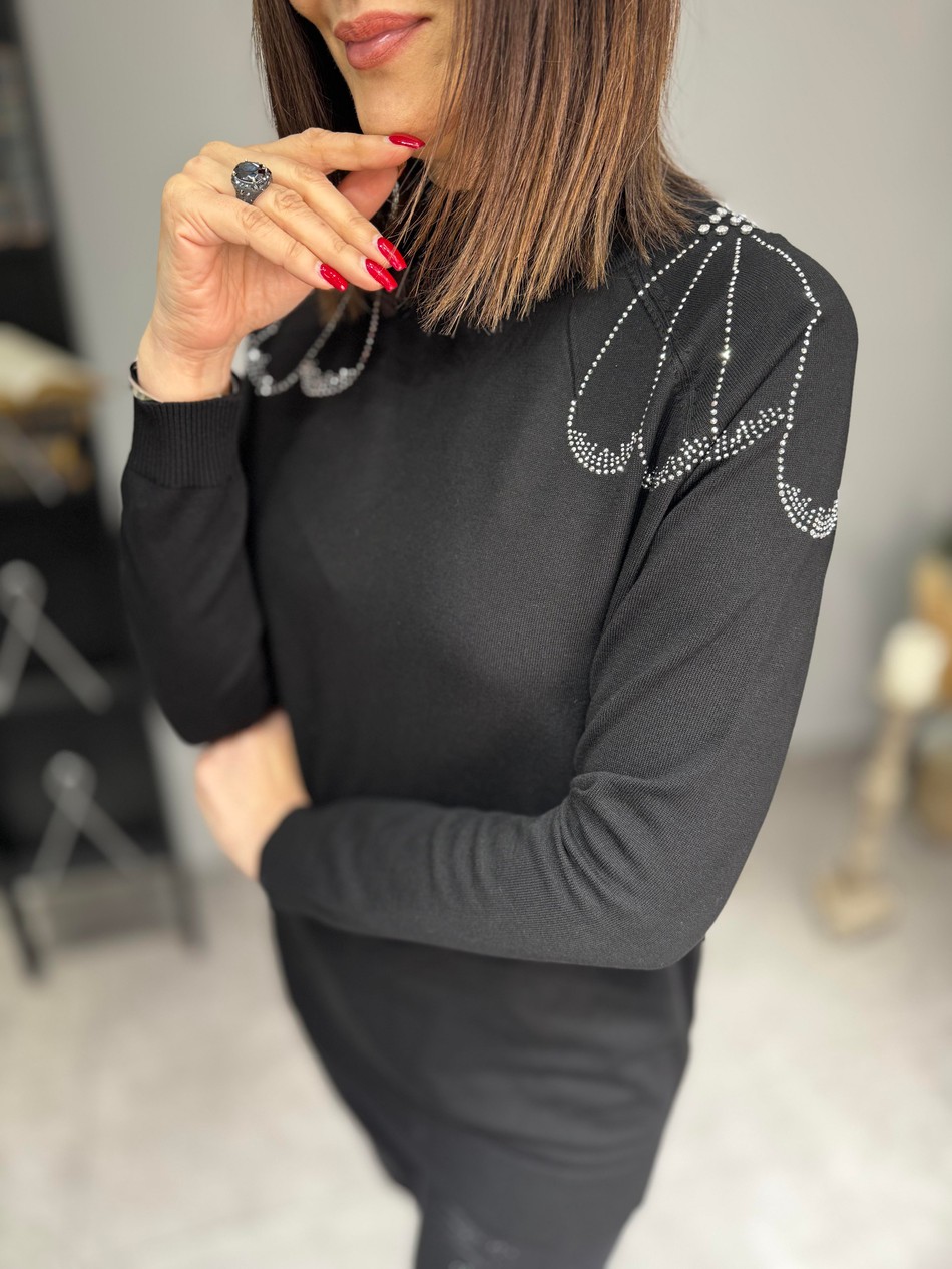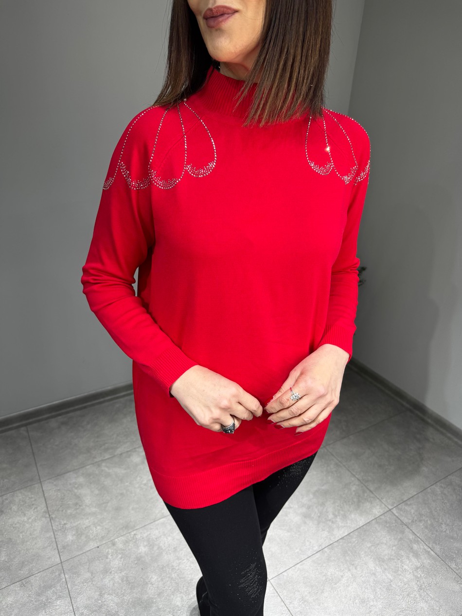 Standart 40-44 Beden Uyumlu, Omuzu Kristal Taş Detaylı, Yarım Balıkçı, Triko Tunik…